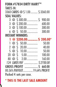 Dirty Hairy 3360ct Supercard Bonus Board Pull Tabs