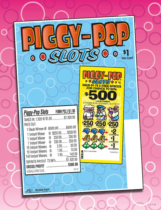 Piggy-Pop Slots 1920ct Daub Ticket Pull Tabs