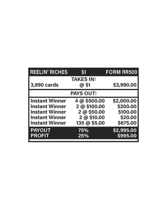 Reelin' Riches 3990ct $1 4-$500 Instant Pull Tabs