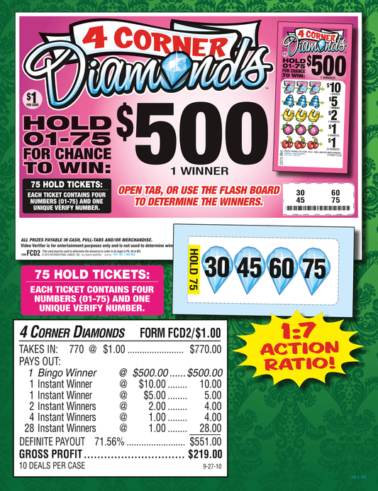 Four Corner Diamonds 770ct Daub or Seal Game Pull Tabs