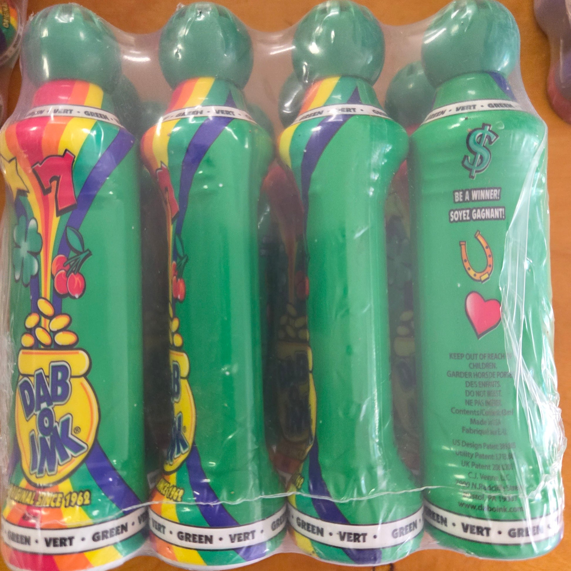 Keep the games running smoothly with our Dab O Ink Green Bingo Daubers. Each 1.5oz bottle is filled with high quality, quick drying ink in a vibrant shade, making it easy for players to mark cards clearly and consistently. The comfortable grip bottles are designed for ease of use during extended play, ensuring a smooth experience every time.