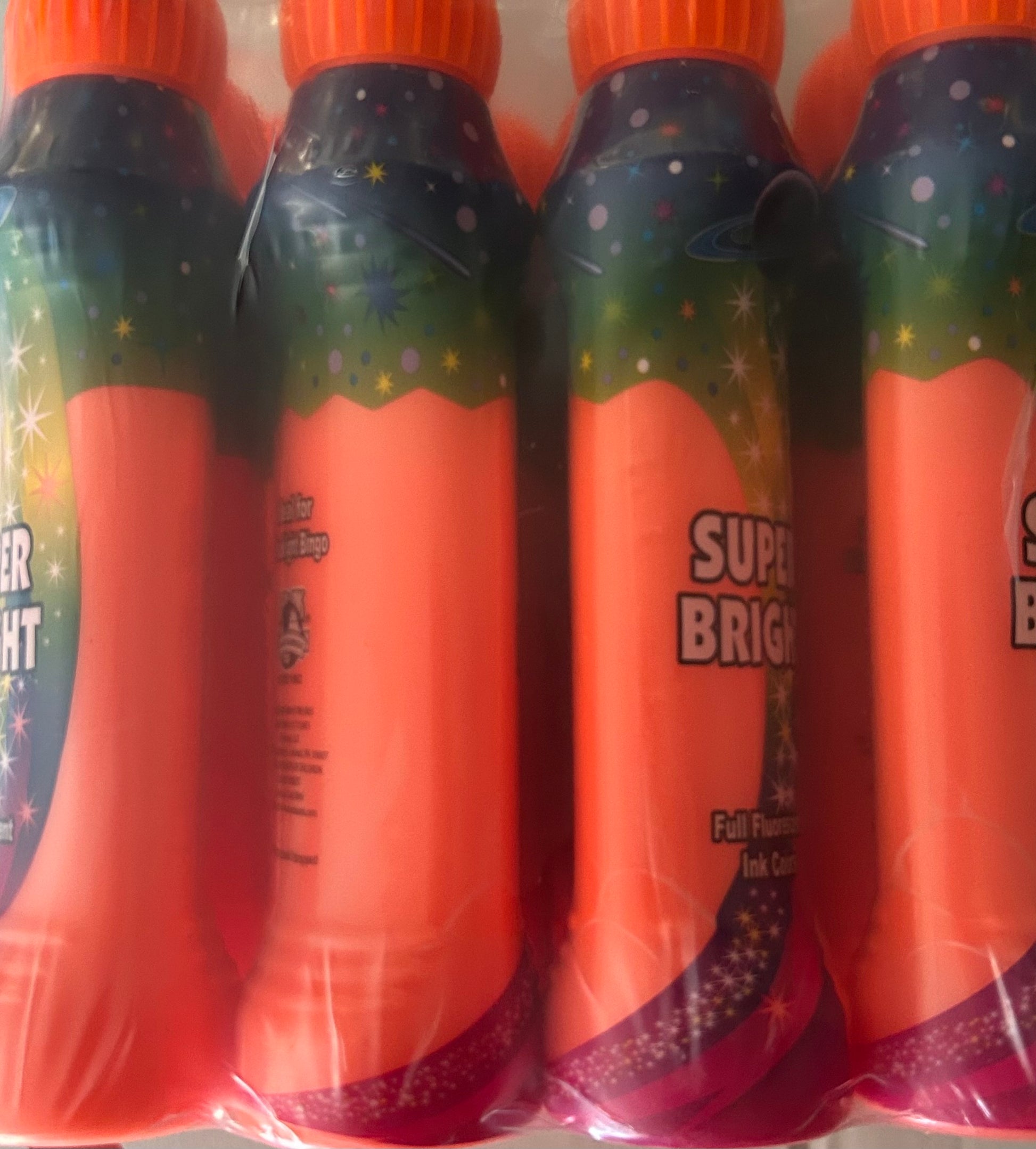 Add something vivid to every game with our Orange Super Bright Fluorescent Bingo Daubers. Great for Blacklight Bingo! Each 3oz bottle is packed with high quality, quick drying bingo ink in a bold fluorescent finish, making it easy for players to mark cards clearly and keep the game moving. Designed with a comfortable grip bottle, these daubers are perfect for extended play at bingo halls, community events, and fundraisers.