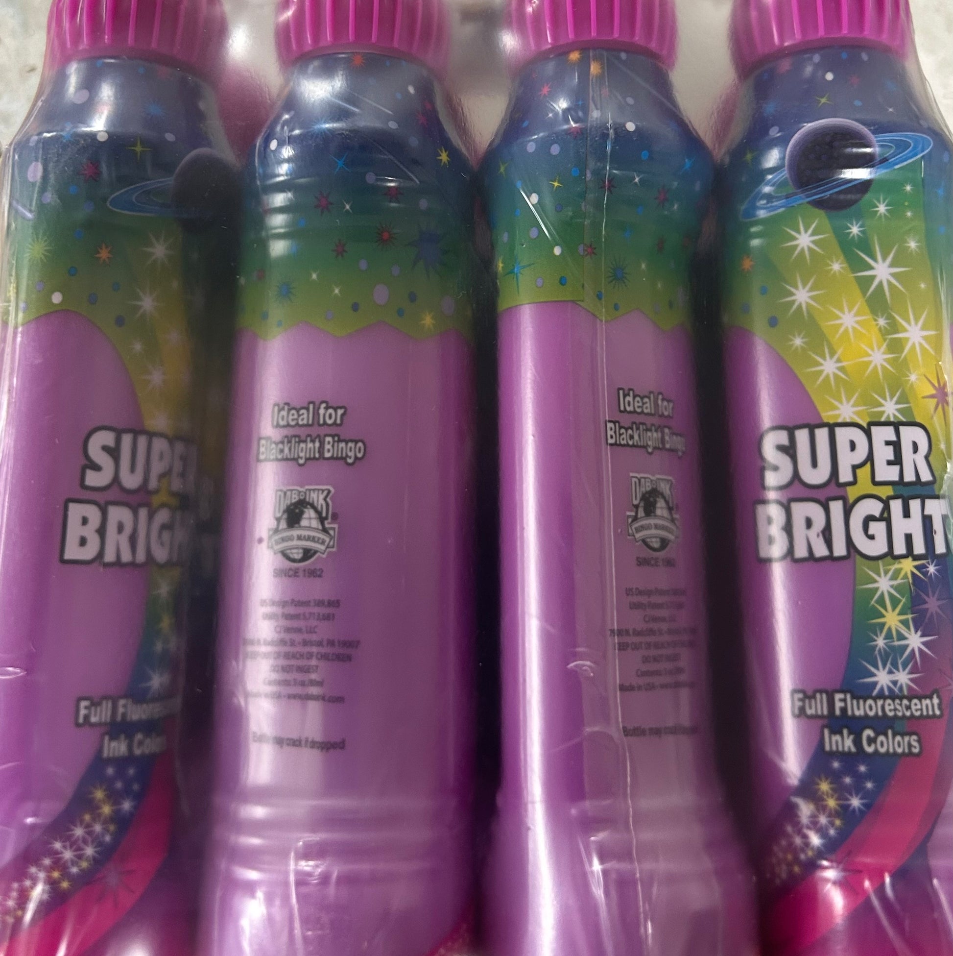 Add something vivid to every game with our Purple Super Bright Fluorescent Bingo Daubers. Great for Blacklight Bingo! Each 3oz bottle is packed with high quality, quick drying bingo ink in a bold fluorescent finish, making it easy for players to mark cards clearly and keep the game moving. Designed with a comfortable grip bottle, these daubers are perfect for extended play at bingo halls, community events, and fundraisers.
