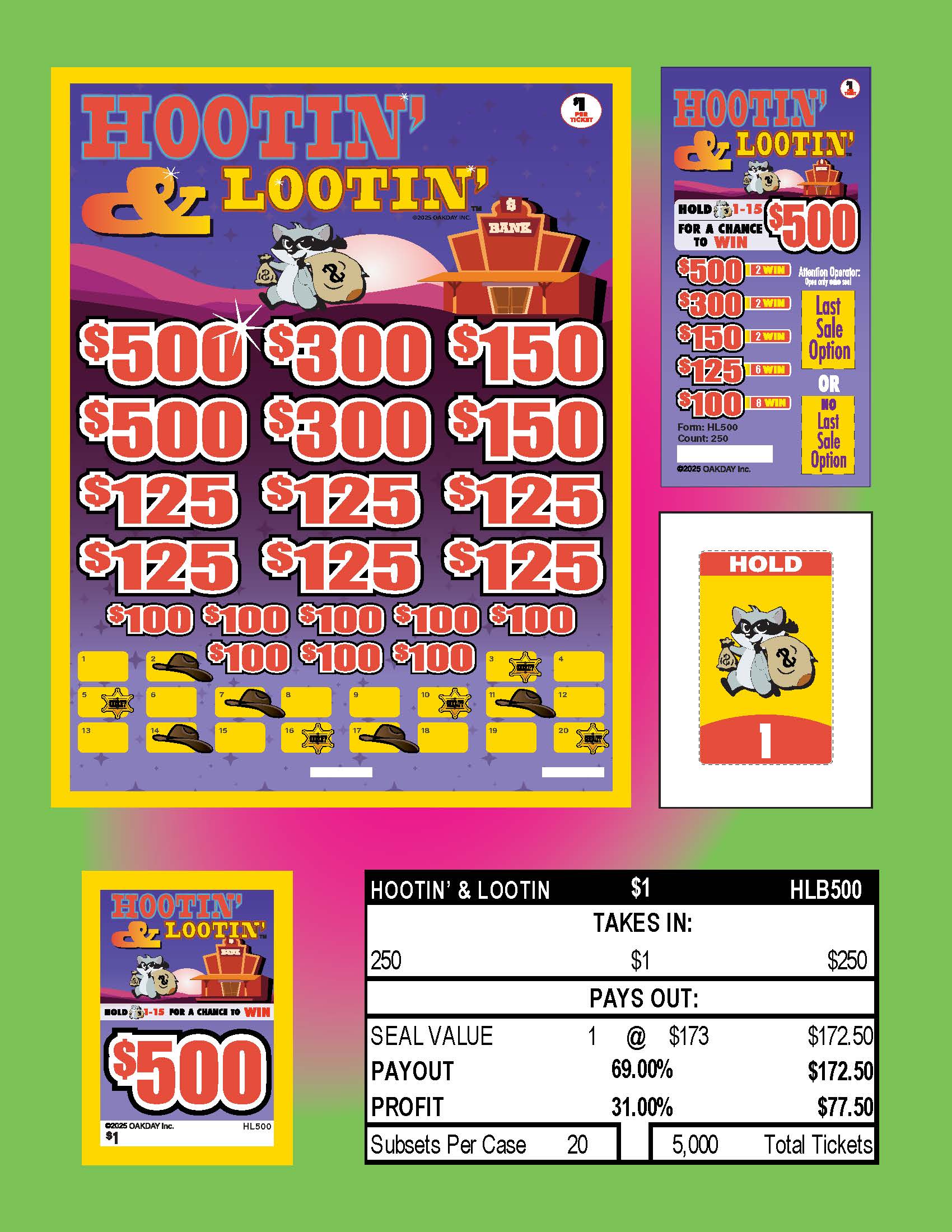Hootin' & Lootin' 250ct Subset Bonus Board Pull Tabs