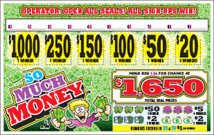 So Much Money/ All Sign Ups Win Seal Game/ $1@2700ct/ 1-$1000 1-$250/ 9 Total Sign Ups/ Profit $760/ 17848