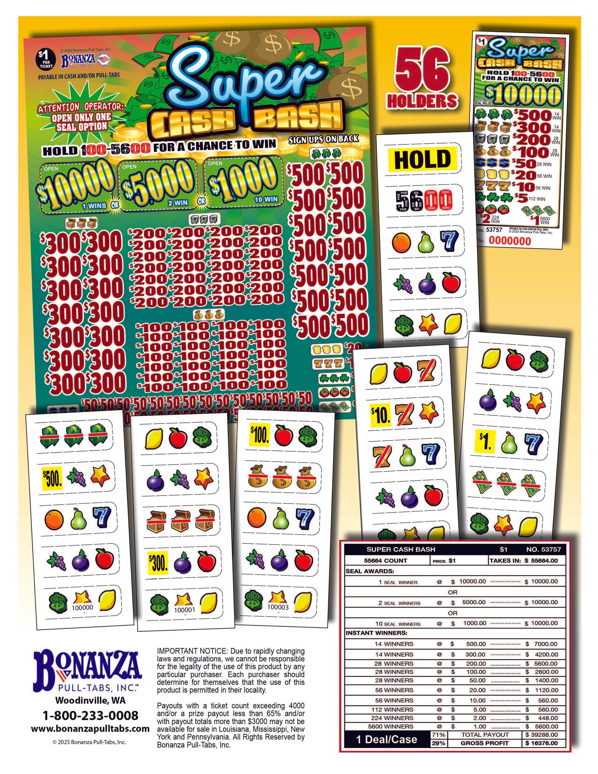 Super Cash Bash 55664ct Instant Bonus Seal Pull Tabs